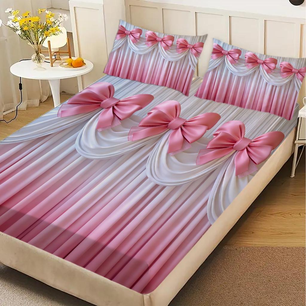 Розовый Бант Шторы Комплект Постельного Белья Натяжная Простыня Розово-Белый Градиент Шторы Принт Комплект Постельного Белья С Наволочками Для Спальни
