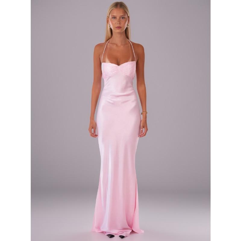New Sexy Tube Top Sequined Satin Solid Color Halter Lace-up Hip Dress Summer Dress