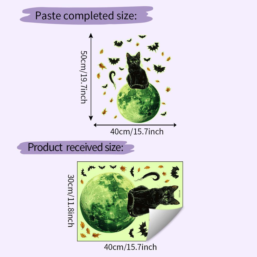 This PVC wall decal features a luminous moon, black cat, and bat design, enhancing modern interior decor. Measuring 12in x 16in, it supports quick application with self-adhesive backing. Ideal for living rooms, study areas, or commercial spaces, it creates a captivating nighttime ambiance. Easily wipe clean for maintenance.