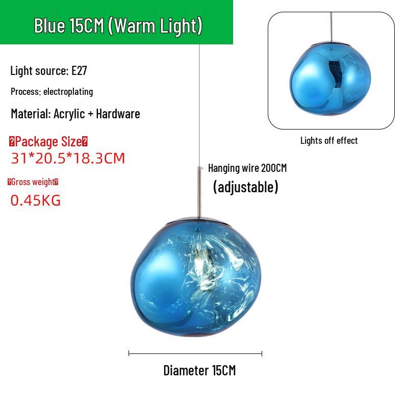 Creative Irregular Blue Glass Lava Effect Pendant Light