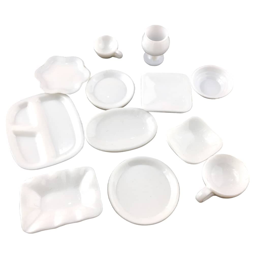 moin moin 112 scale dollhouse miniature 12-piece tableware set, white cutlery, plates, dolls, ceramic, 2207mini2