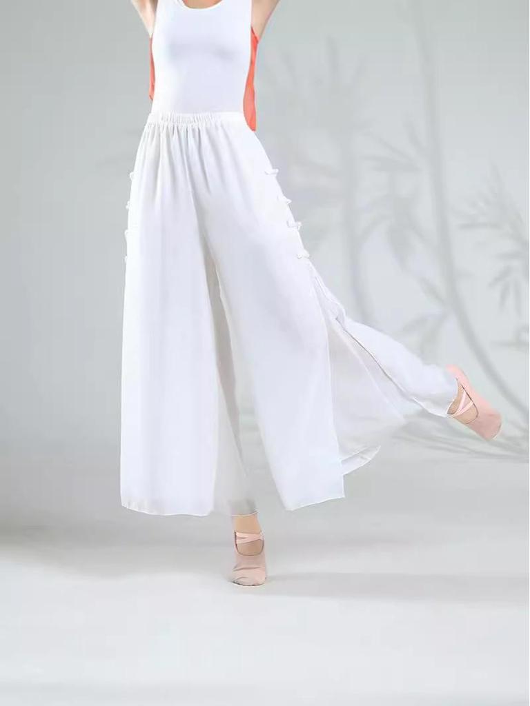 Женские двухслойные белые шифоновые танцевальные кюлоты - Широкие струящиеся брюки для практики классического китайского танца — купить товар онлайн с бесплатной доставкой по всему миру!