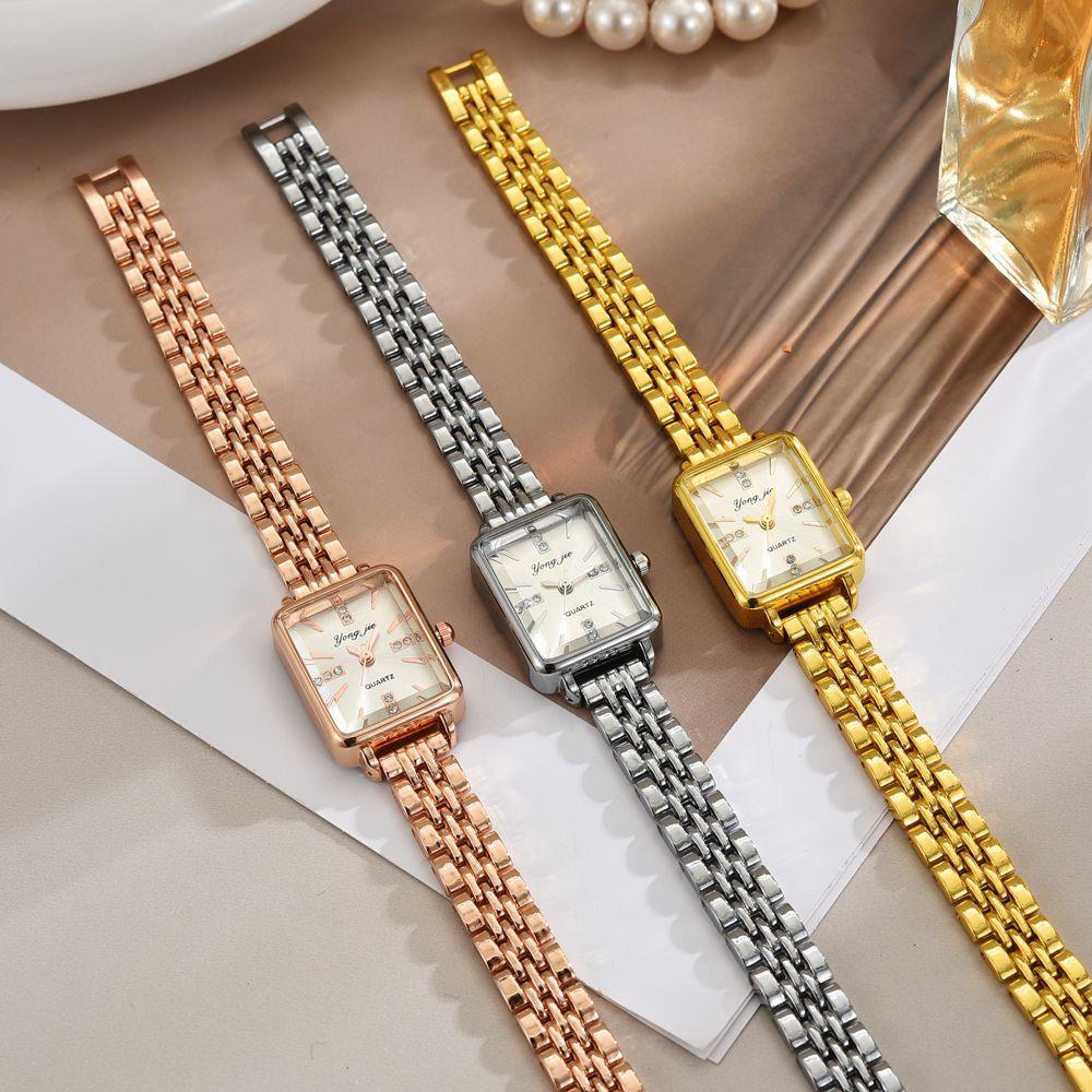 Винтажные Женские Модные Кварцевые Часы Простая Шкала Квадратные Женские Часы Деловая Сплавная Ремешок Складной Часы Фестивальные Подарки