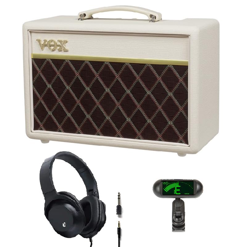 VOX Pathfinder 10 Compact Guitar Amplifier in Cream Brown with Headphones and ELISE tuTune Tuner Set (PF-10 CB) KHP-001 Clip-on
