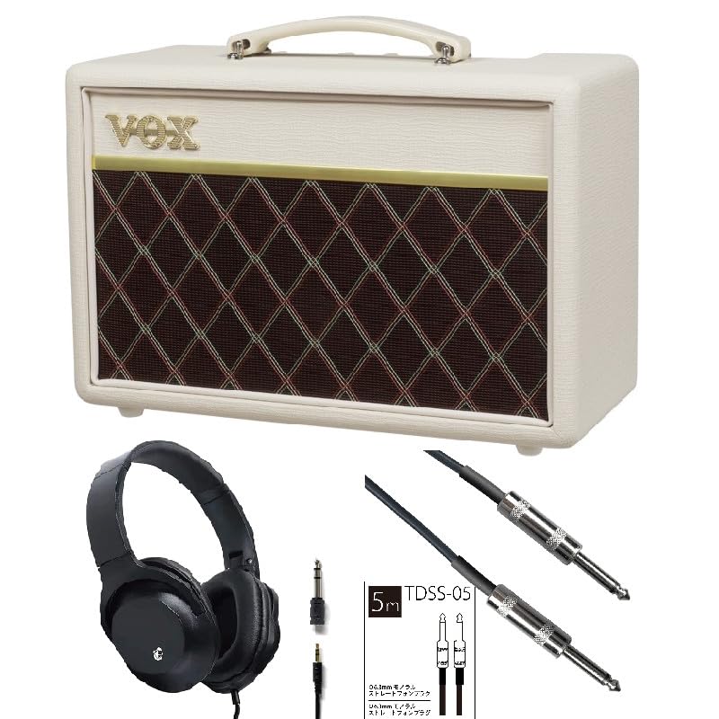 VOX Pathfinder 10 Compact Guitar Amplifier in Cream Brown with Headphones and 5m Shielded Cable (PF-10 CB) KHP-001