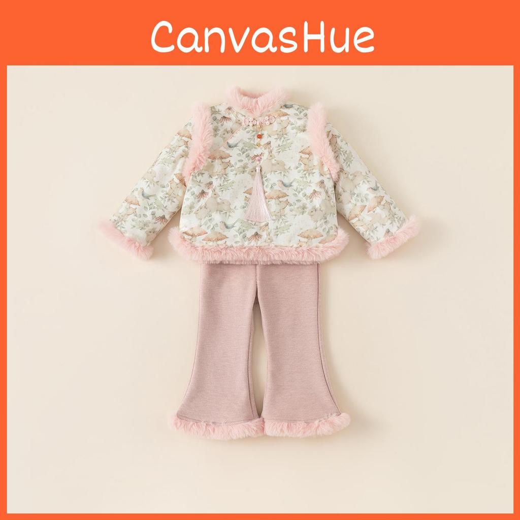 Традиционный китайский набор для переодевания девочки с теплым топом с длинным рукавом и брюками для детей для зимней носки