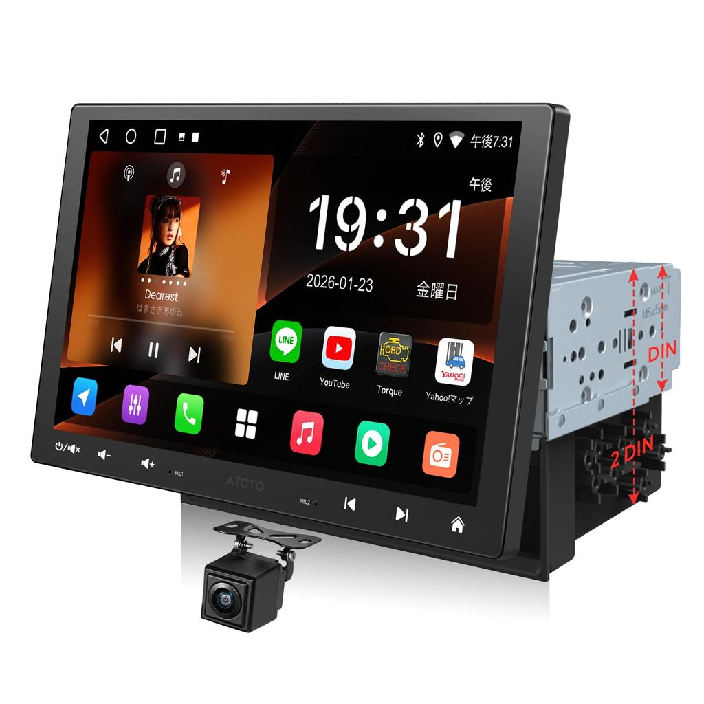 ATOTOZONE A5L 10.1-inch Android Navigation System, 1DIN/2DIN Compatible, Display Audio, Wireless CarPlay & Android Auto, 2G+32G