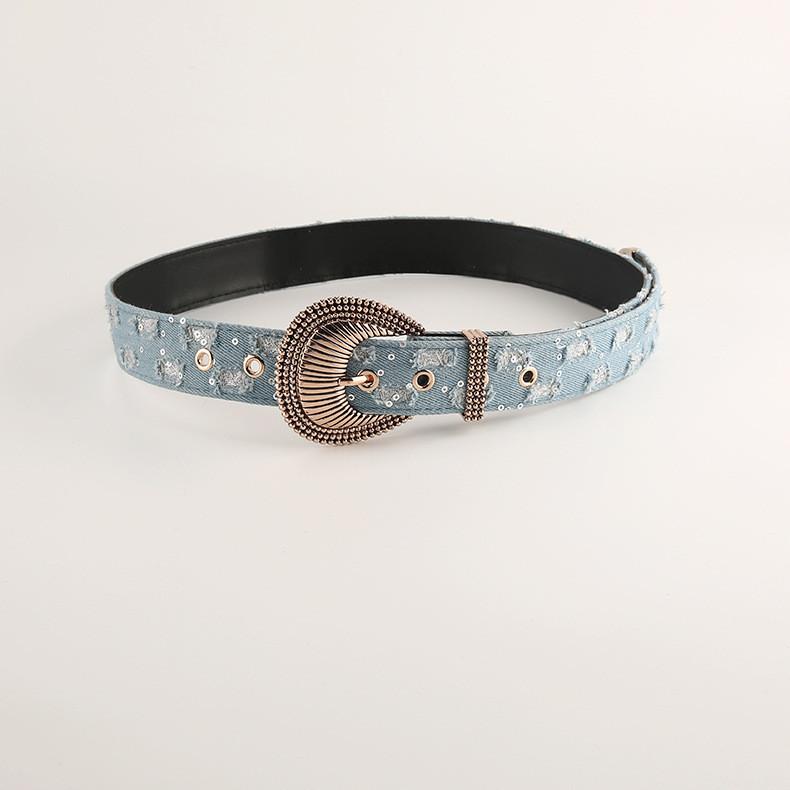 Retro Floral Embossed Denim Belt Unique Leather Belt Decoration Versatile Needle Buckle Belt Trendy Waistband — купить товар онлайн с бесплатной доставкой по всему миру!