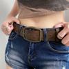 Retro Floral Embossed Denim Belt Unique Leather Belt Decoration Versatile Needle Buckle Belt Trendy Waistband