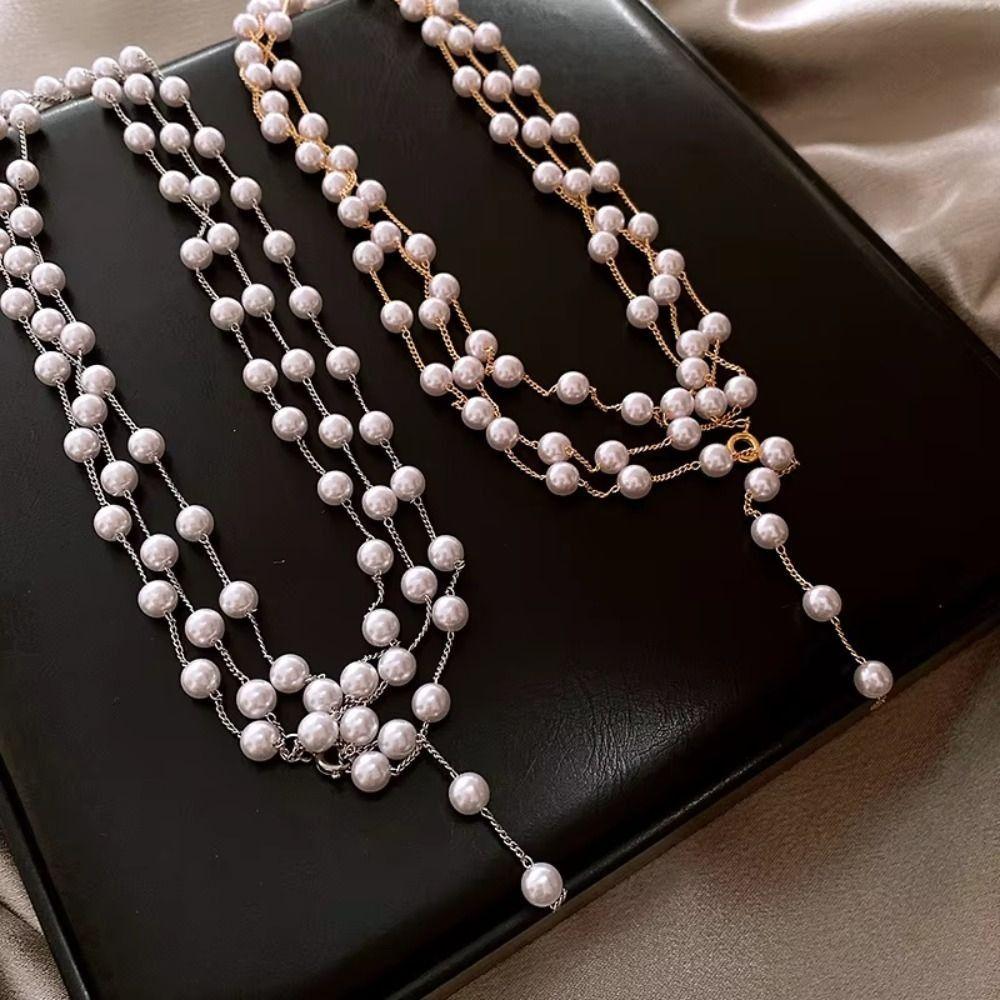 Fashion Sweater Chain Simulated Pearl Collarbone Chain Elegant Long Pearl Necklace Beach
