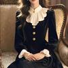 Элегантное Ретро Черное Бархатное Платье с Оборками - Осень/Зима
