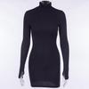 Women's Autumn Black High Neck Long Sleeve Slimming Dress - Hot Girl Style, Waist-Cinched, Hip-Hugging, Short Skirt — купить товар онлайн с бесплатной доставкой по всему миру!