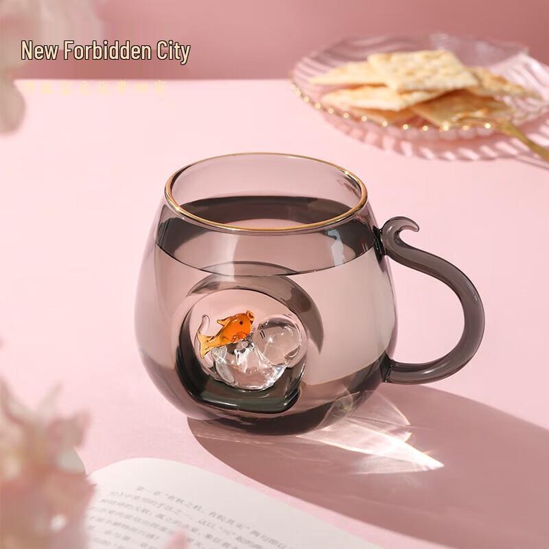 Креативная стеклянная кружка "Кот и Рыба Дворца Запретного города"