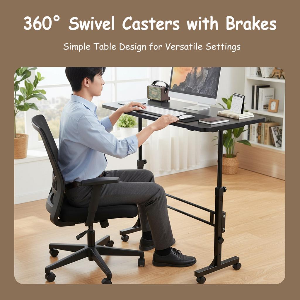 Mobile Stand Up Laptop Desk 16x31.5In 70-110cm Adjustable Height 4 Lockable Wheels 10KG Bearing for Home Office