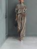 Женский двухпредметный комплект из золотистого бархата Осень/Зима 2025: Топ с длинным рукавом и брюки широкого кроя