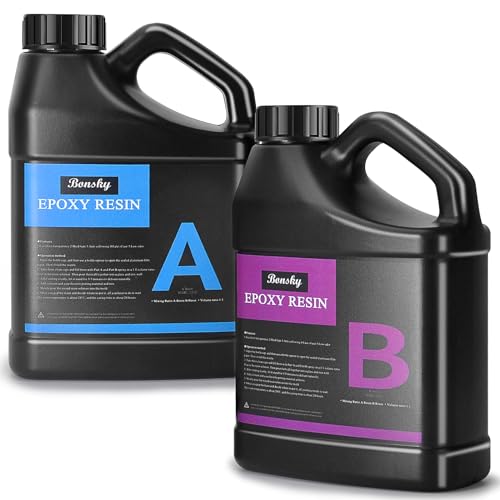 Эпоксидная смола Bonsky, 2 компонента, 64 унции, большой объем, двухкомпонентная, 1:1 Соотношение объемов (Часть А + Часть Б), Высокая прозрачность, Высокая твердость, Не желтеет, Простота использования, Естественное отверждение, Эпоксидная смола, Покрывная смола, Литье в дерево, Высокий блеск