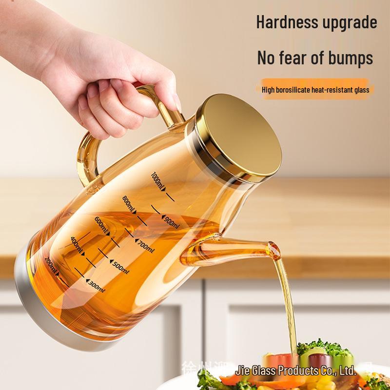 Стильный нескользящий стеклянный диспенсер из боросиликатного стекла большой емкости со шкалой для масла, соевого соуса и уксуса