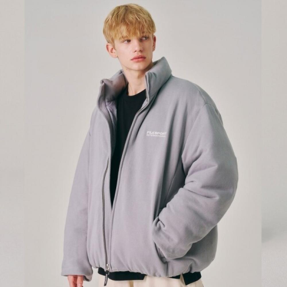 The FILA Uni Loose Fit FILASPORT Knit Down Jacket features a loose fit design that provides comfortable wear. It has a naturally flowing silhouette and is made from knit fabric, adding sophistication. The color is gray (GRAY), suitable for a variety of outdoor activities.