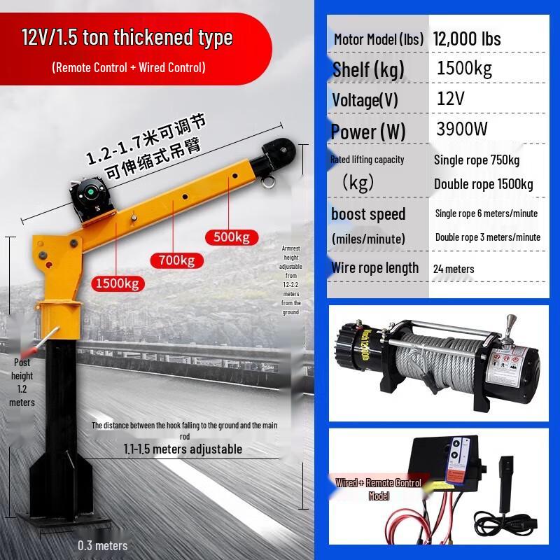 Erboli 1.5-Ton Vehicle Crane with Remote & Wire Control CN plug (adapter included) — купить товар онлайн с бесплатной доставкой по всему миру!
