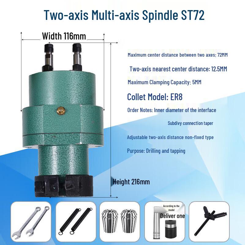 Deqier Adjustable Two-Axis Multi-Spindle Drill & Tapping Head CN plug (adapter included)