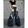 Мужские джинсы с широкими штанинами JYL Песчаная пустошь Американская Тяжелая стирка Заплатка Черные джинсовые штаны