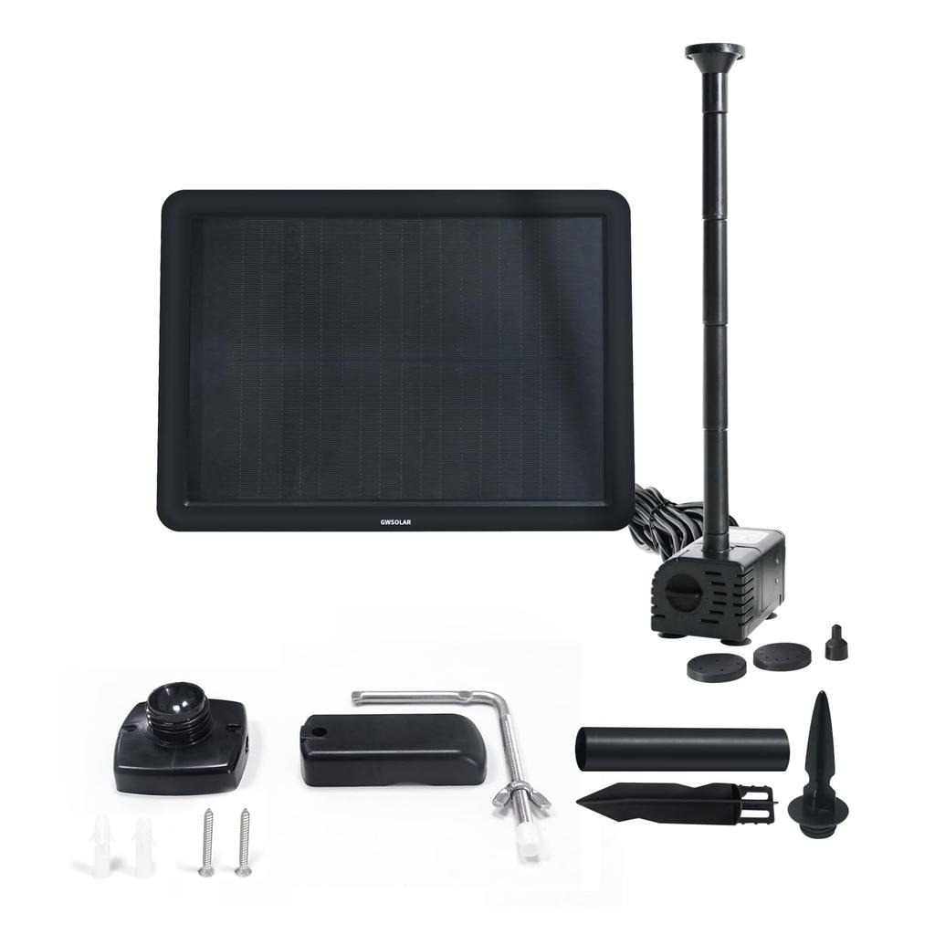 Great for cloudy days! GWSOLAR Hybrid "Smart" Solar Pump. Waters for approximately 3 hours after sunset on clear days! [7W solar panel, built-in 8.88W
