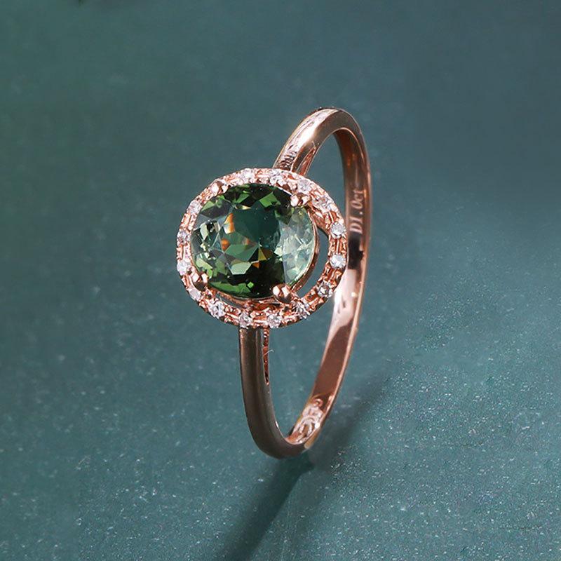 Rose Gold Plated Russian 585 Purple Gold Colored Treasure Brazilian Tourmaline Green Sparkling Ring Set With Zircon Jewelry