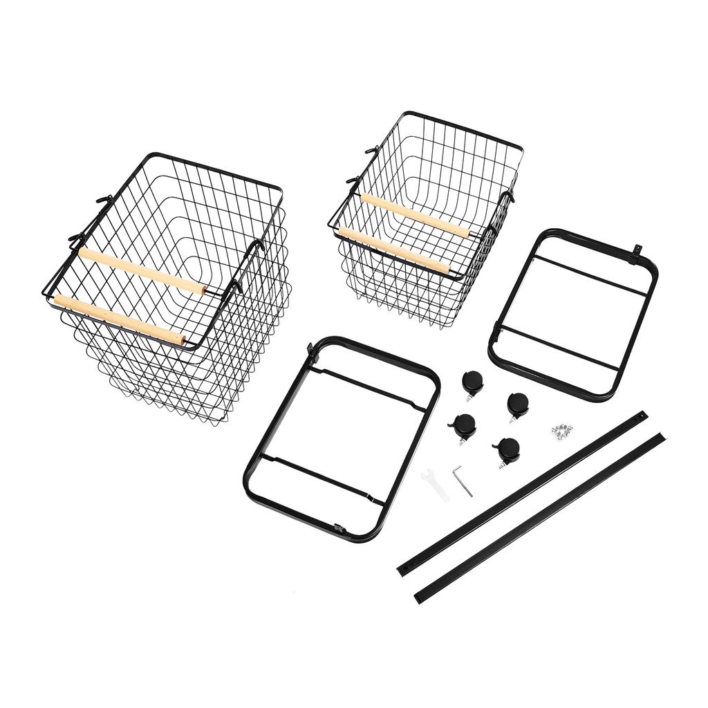 2-ярусная тележка-корзина для белья на колесах, Сверхпрочная железная рама, Органайзер для хранения, Корзина для одежды, игрушек, Современный черный