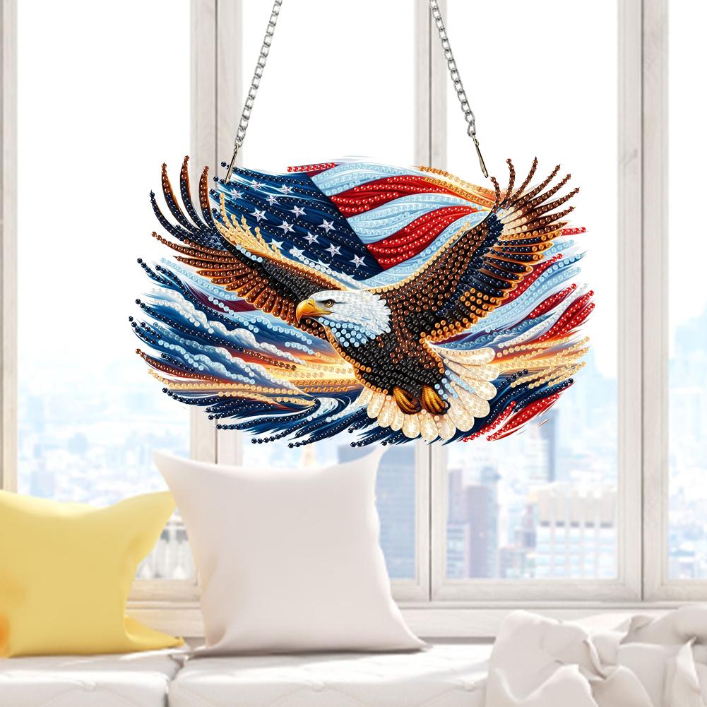 US Flag Eagle 2D Flat DIY Rhinestone Diamond Art Window Pendants Hanging Diamond Art Kits Window Hanging Art for Home Decor