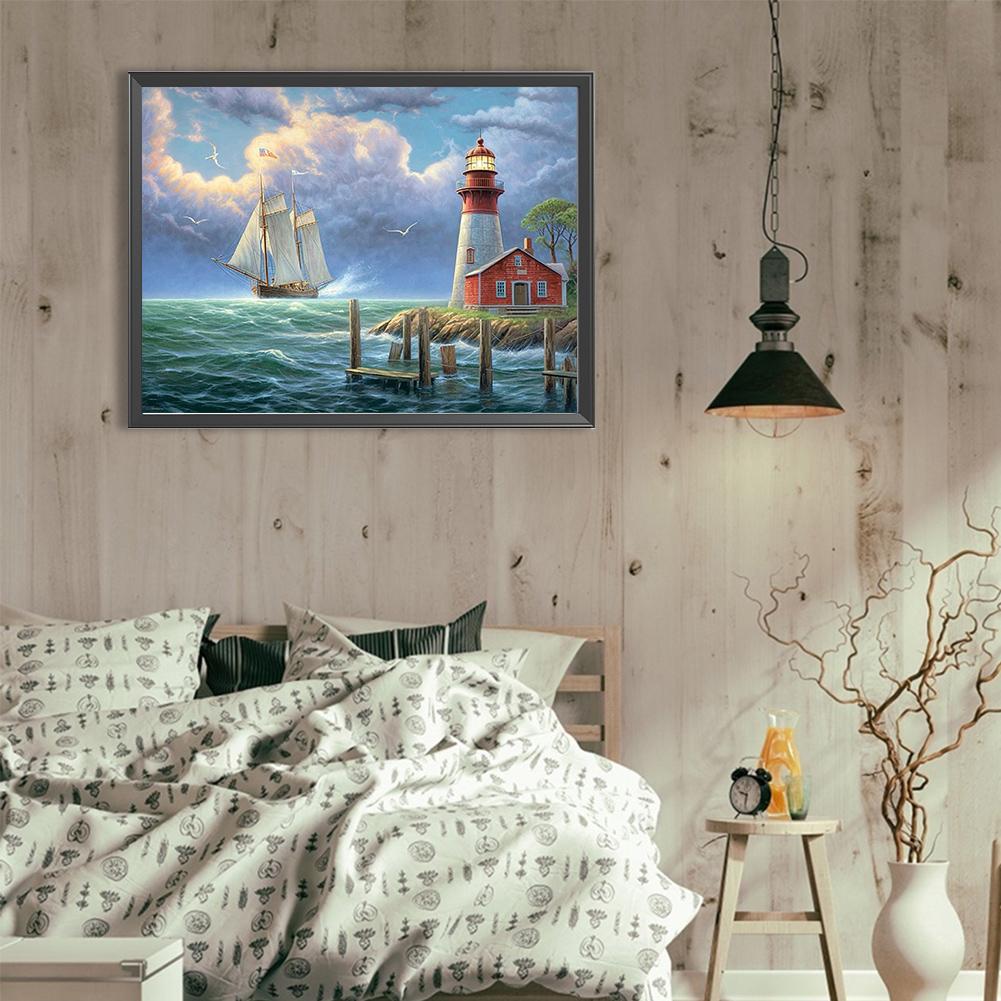 5D DIY Полный Круглый Алмазная Живопись Морской Маяк Домашний Декор Искусство Ремесло