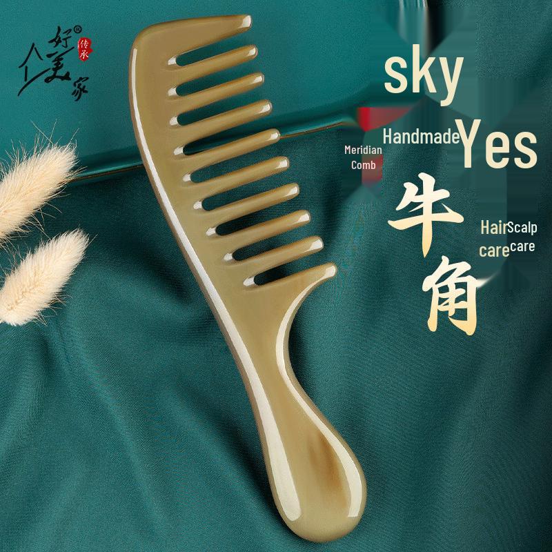 Натуральный гребень для волос из рога быка с широкими зубьями — купить товар онлайн с бесплатной доставкой до всему миру!