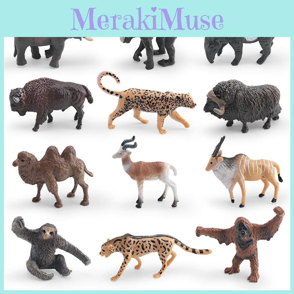 This set features realistic PVC models of wild animals including elephants, sloths, muskoxen, Malayan tapirs, orangutans, antelopes, camels, and more. Each static figure is crafted for accurate representation. The detailed animal sculptures are ideal for educational displays or collection purposes. They are designed for indoor use, such as classroom exhibits or home decor. To maintain their appearance, wipe models with a damp cloth regularly.
