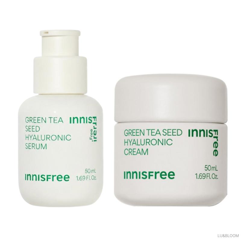 The Innisfree Green Tea Seed Hyaluronic Set is a high-performance hydration duo designed to instantly recharge moisture and strengthen the skin's barrier. Featuring the 2024-2026 upgraded formula, this set pairs the iconic "first-step" serum with a long-lasting moisture cream. Both products utilize Beauty Green Tea™ and Encapsulated Hyaluronic Acid to provide a 5x higher absorption rate than standard hyaluronic acid, making it an essential routine for glowing, "glass skin."