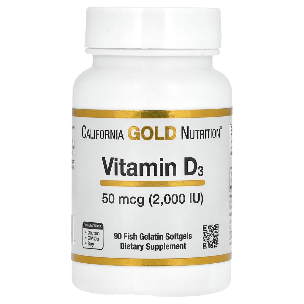 California Gold Nutrition, Витамин D3, 50 мкг (2000 МЕ), 90 капсул из рыбного желатина — купить товар онлайн с бесплатной доставкой по всему миру!