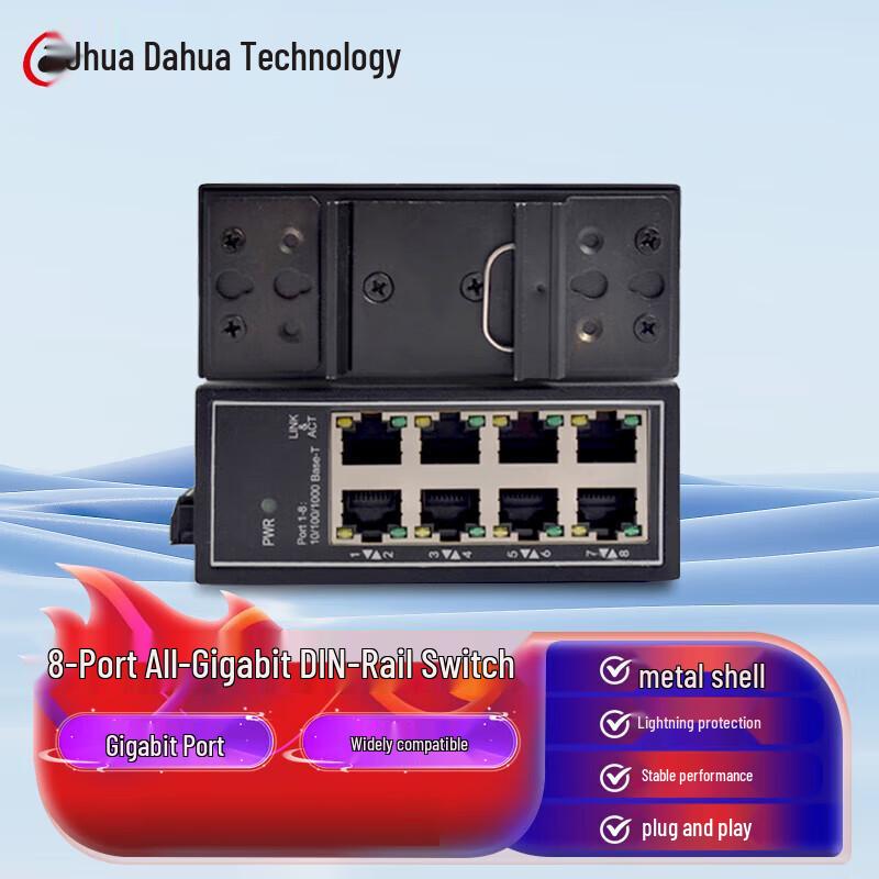 Dahua 8-Port Gigabit Industrial DIN Rail Ethernet Switch — купить товар онлайн с бесплатной доставкой по всему миру!