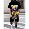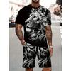 Мужской комплект из 2 предметов: футболка с графическим принтом льва и шорты. Мужской комплект с коротким рукавом и шортами на кулиске. Дышащая мужская одежда