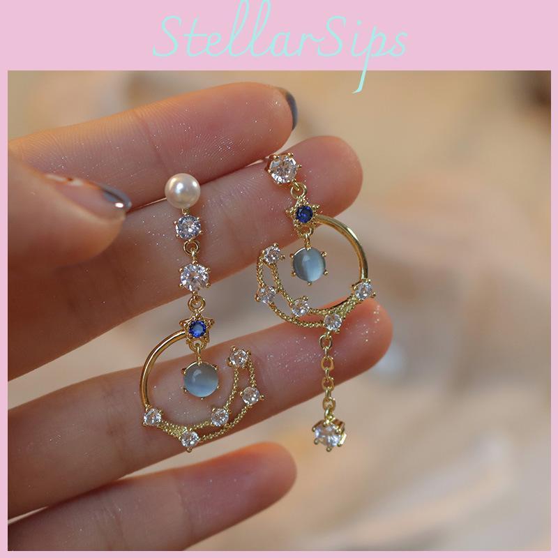 These long drop earrings feature an asymmetric floral design crafted from durable alloy with a polished electroplated finish, they include stainless steel ear pins for secure wear and sparkling moon accents that enhance their trendy look. Ideal for daily office attire or casual outings, they add a sophisticated touch to any ensemble. Wipe clean with a soft cloth to maintain their shine.