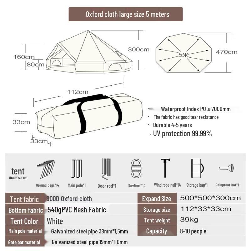 Outdoor Indian Yurt Pyramid Tent with Chimney Port