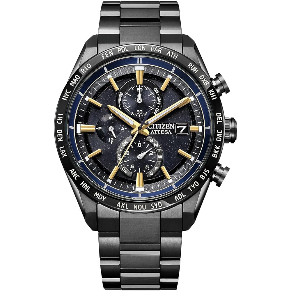 [Limited Edition Model Inspired by JAXA's New Space Station Resupply Vehicle, the HTV-X] Citizen ATTESA continues to advance the next generation with titanium. The black dial, shimmering with fine glitter, evokes the image of outer space. Yellow gold hands and indices, inspired by the HTV-X's body color, emanate a dignified presence. Limited to 1,300 pieces worldwide.