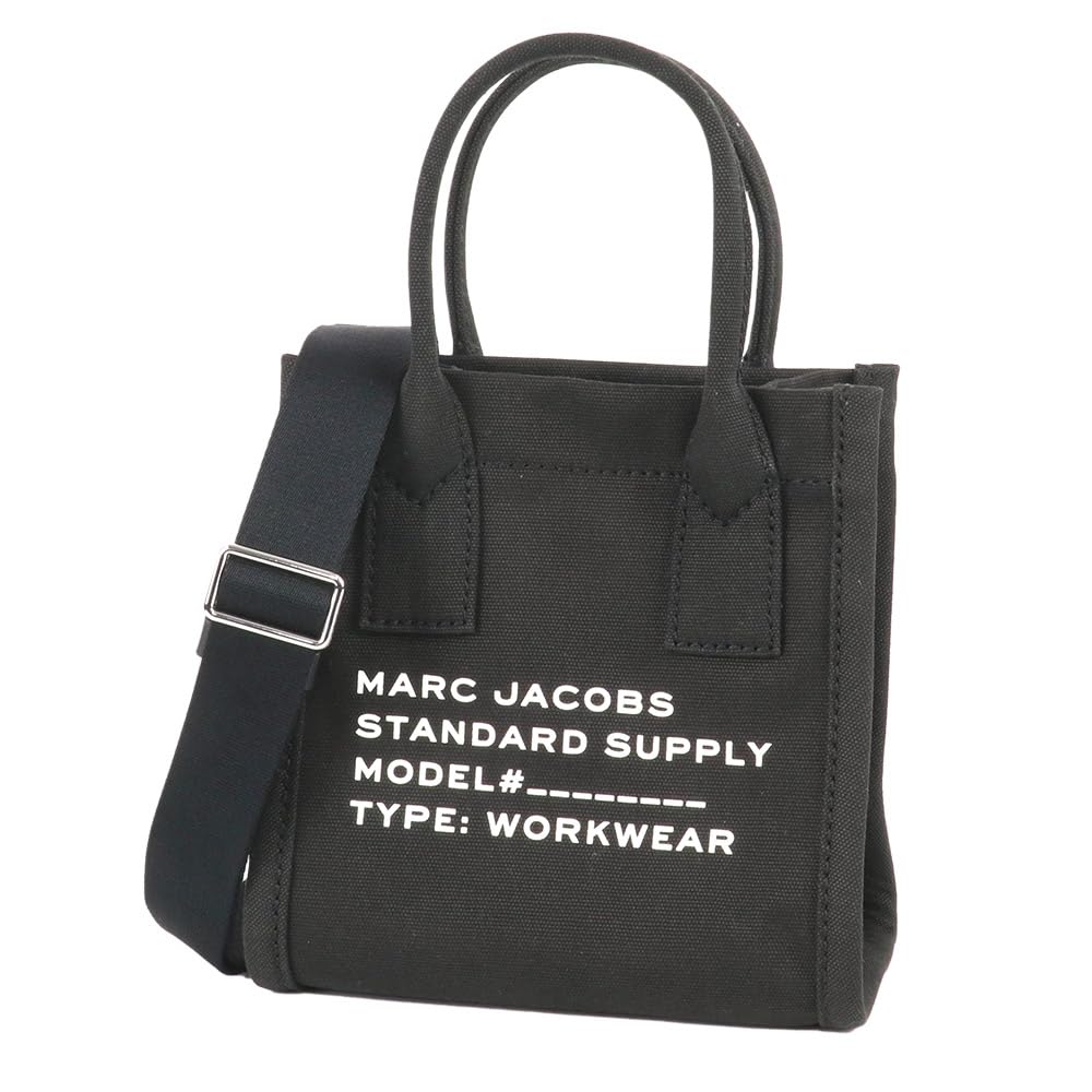 This is a Marc Jacobs canvas shoulder bag from the Fall/Winter 2025 collection. It features a black canvas tote bag accented with a logo print. Its zipper closure allows it to easily fit a bifold wallet. The included shoulder strap is detachable and adjustable, making it a convenient two-way bag that can also be worn crossbody. It's perfect for commuting to school or work, or for everyday use!