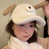 Уличная бейсболка с кроличьими ушками, регулируемая, зимняя, с козырьком, модная бейсболка из овечьей шерсти, для девочек
