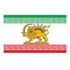 Иранский флаг размером 90 x 150 см имеет изображение древнего иранского флага, солнца и короны, а также два латунных люверса.. Его цвета символизируют