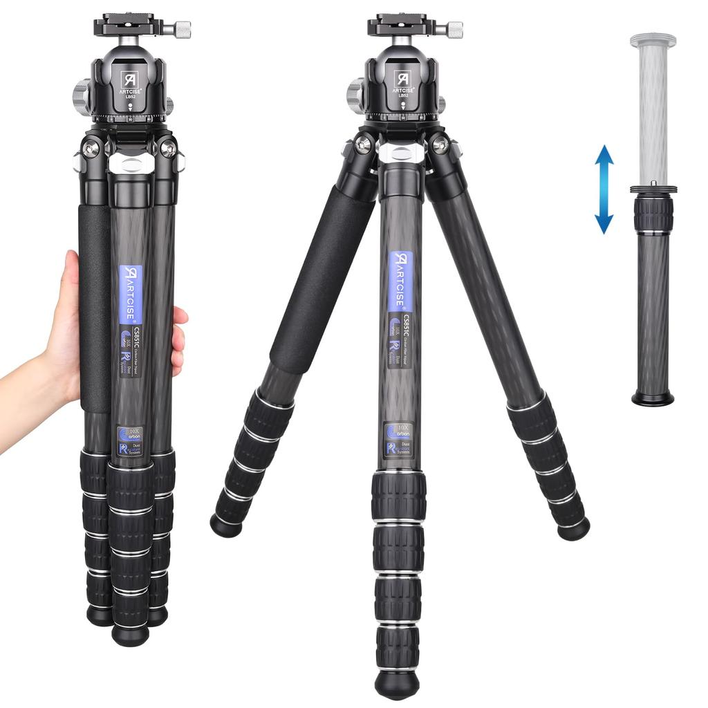 [Устойчивый штатив из углеродного волокна] Штатив для камеры CS851C изготовлен из высококачественного углеродного волокна и имеет максимальный диаметр трубки 36 мм. Основные шарниры изготовлены из алюминиевого сплава высокой жесткости и обработаны на станках с ЧПУ для обеспечения долговечности и устойчивости.. Центральная ось оснащена крючком-грузом для подвешивания багажа, обеспечивая еще большую устойчивость.. Он весит всего 2,42 кг и выдерживает максимальную нагрузку 30 кг.