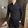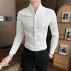 Мужская приталенная рубашка с воротником-стойкой и длинным рукавом, фактурная ткань, повседневная, деловая