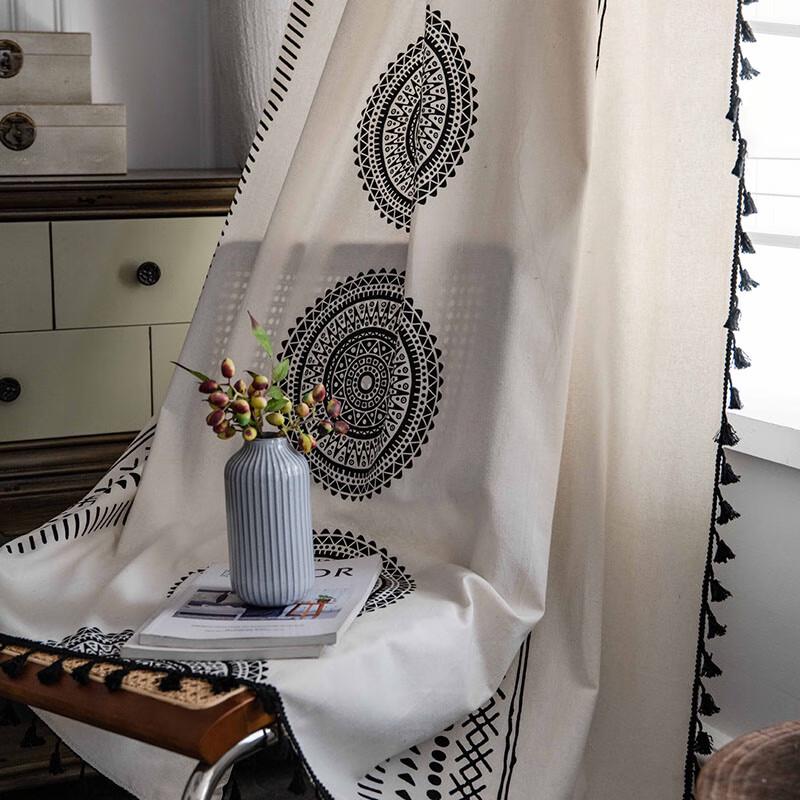 МодельКремовый принт Мандала, Черные кисточки, 150x300 см