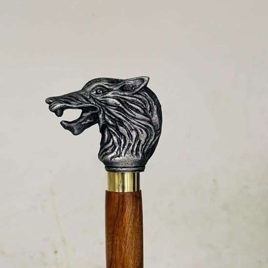 Каждая трость изготавливается вручную из прочной древесины твердых пород с полированной отделкой, что обеспечивает долговечность, прочность и комфорт.. Ручка в виде латунной волчьей головы добавляет королевский штрих, демонстрируя сложные детали и винтажный шарм.