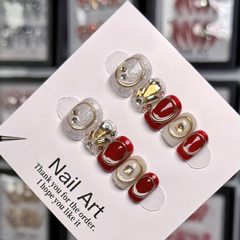 Короткий квадратный дизайн универсален и моден. Сложные детали и сверкающие стразы добавляют ослепительный эффект, заставляя ваши ногти сиять как никогда раньше.