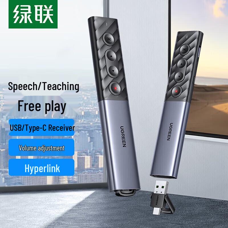 Этот беспроводной лазерный пульт-презентер UGREEN идеально подходит для учителей, лекторов и всех, кто проводит презентации. Он оснащен ярким красным лазерным указателем, инфракрасным беспроводным управлением и питается от литиевой батареи, что делает его идеальным для использования с PPT и другим мультимедийным учебным ПО на проекционных экранах.