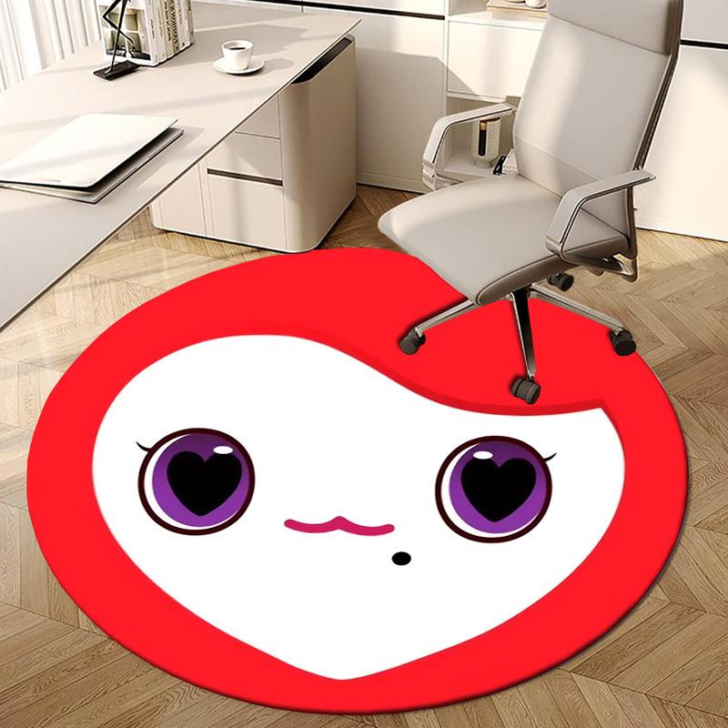 1pc Heart-shaped character with purple eyes and red hair. Round carpet, Made of Polyester,Perfect for Decorating Office Chairs, Living Rooms fplt022
