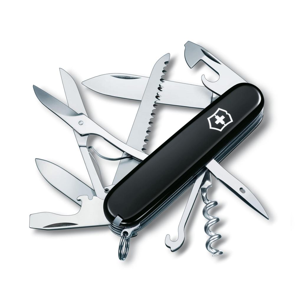 VICTORINOX Huntsman Black Swiss Army Emergency Preparedness Tool for and with Scissors and a Compact and Equipped with 10 Tools Knife,